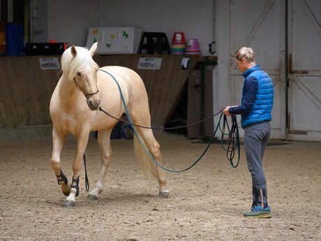 Mélanie c'est la responsable du secteur enfant. Elle nous attribue nos poneys : Tom, Spirit et Carotte. Ils sont adorables et ont des prénoms rigolos ! Notre première mission : les caresser, leur parler sans oublier de les pouponner. Les filles s'amusent à les brosser pour le plus grand plaisir des petits chevaux et de leur crinière folle ! La monture prête et harnachée, nous la guidons ensemble en tenant ses rênes jusque dans le manège pour commencer l’initiation. Les enfants grimpent à l’aide d’un escabeau et Mélanie, très pédagogue, nous explique le langage des chevaux et les différentes postures à connaitre. "Faites le gros ventre comme l’ours" pour vous arrêter, "mettez les rênes sur le côté" pour tourner entre les obstacles. Rose est très attentive et s'essaie même au trot en criant "Trott'trott" à mes côtés. Vous l'aurez bien compris, c'est aussi sportif pour moi !