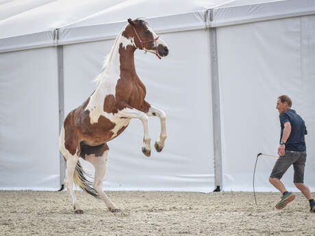Avant de partir à l’aventure, Rose (3 ans), Izia (6 ans) et Zélie (2,5 ans) découvrent les premiers gestes de voltige. Elles opèrent un demi-tour sur leur selle sous nos yeux impressionnés... et osent même se mettre debout. C'est quand même incroyable ce qu'il est possible de faire avec des chevaux ! Elles ont réussi à apprivoiser leur cheval et sont fières de leurs exploits, toujours félicitées par Mélanie la monitrice.